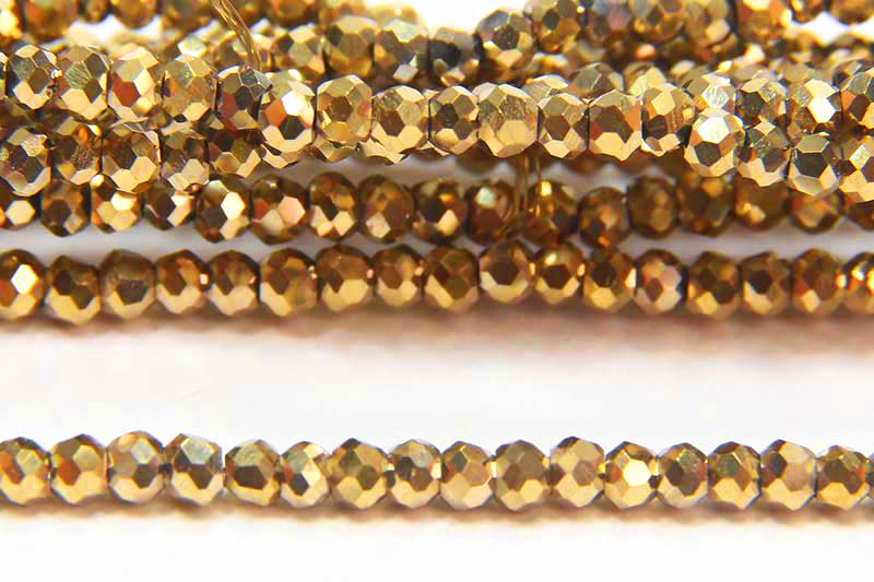Size 11/0 Metallic Old Gold Aurora MicroCrystal beads. Made at 1.5mm x 2.0mm to match the size of Toho 10/0, Miyuki 11/0 or Preciosa 10/0 seed beads perfectly. Made from high quality facetted crystal glass in packs of approximately 200 beads.